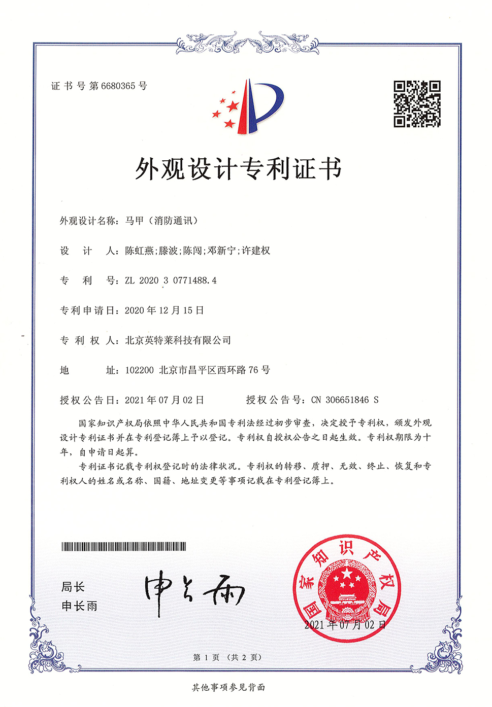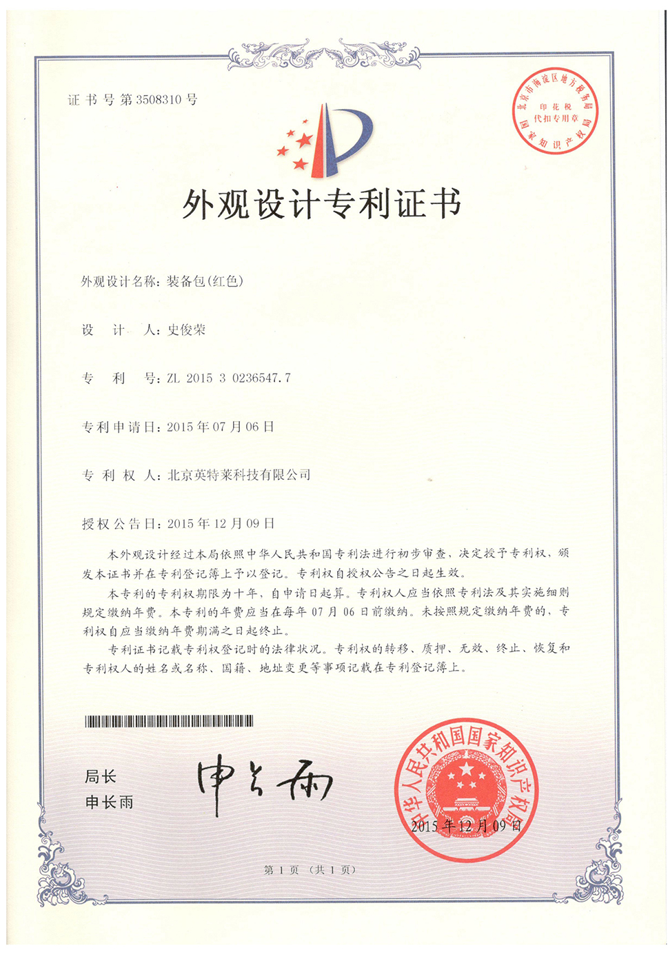 英特萊?商標(biāo)獲國(guó)家注冊(cè)