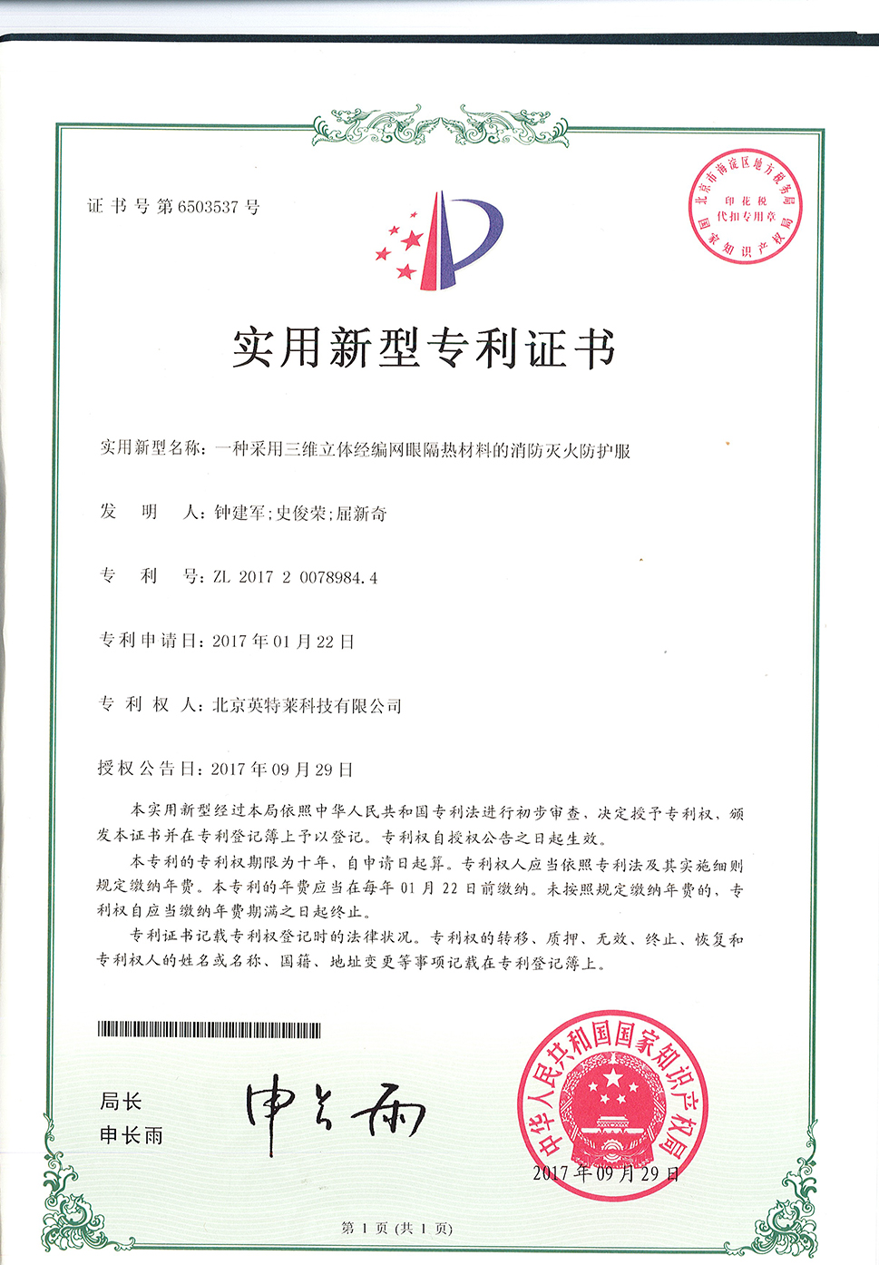 北京英特萊特種紡織有限公司更名為北京英特萊節(jié)能科技有限公司