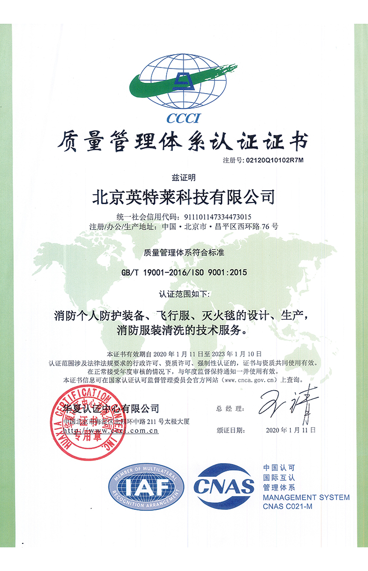 QUALITY MANAGEMENT SYSTEM CERTIFICATE-CHINESE