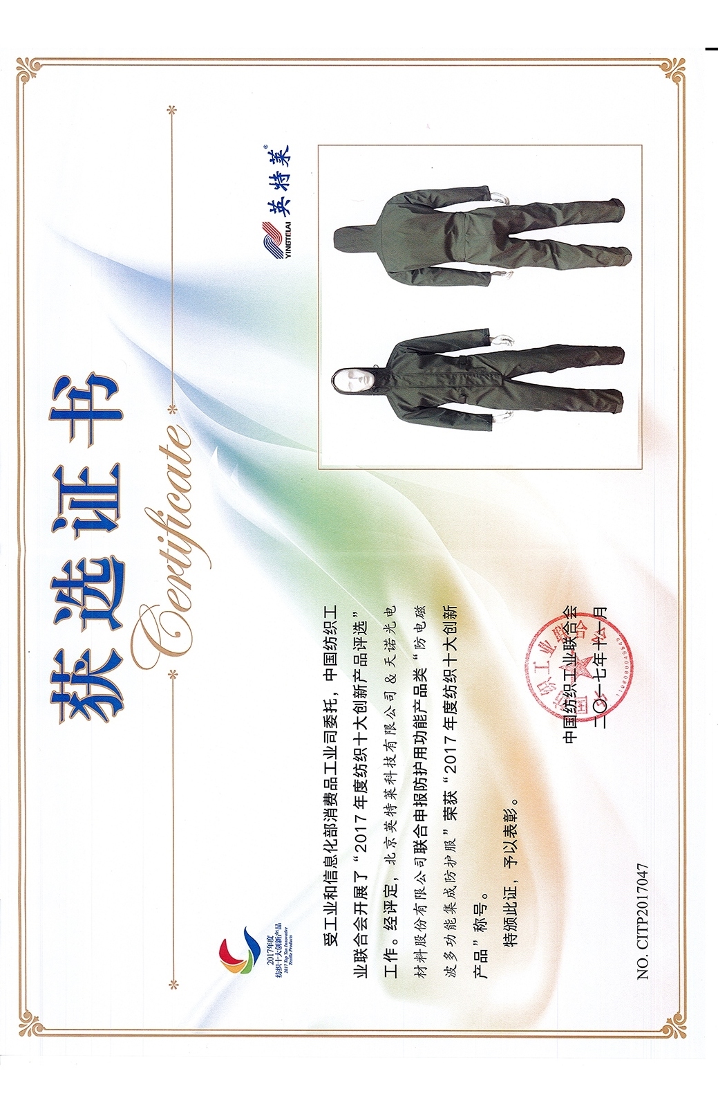 Yingtelai fire suit was selected for exhibition to celebratethe 60th anniversary of the People's Republic of China