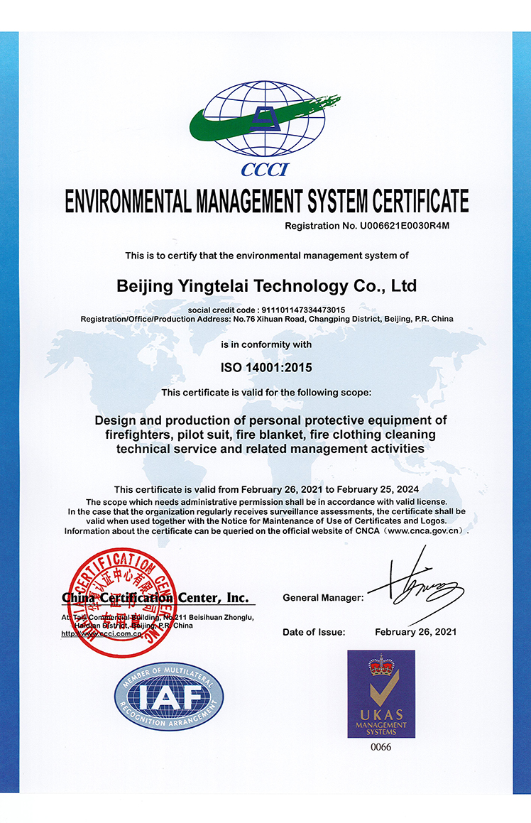 ENVIRONMENTAL MANAGEMENT SYSTEM CERTIFICATE-UKAS-CHINESE