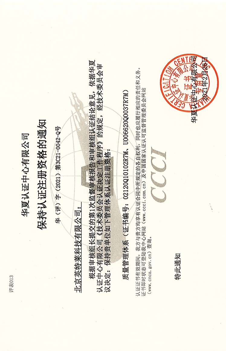 ZHONGGUANCUN HIGH TECH CERTIFICATE